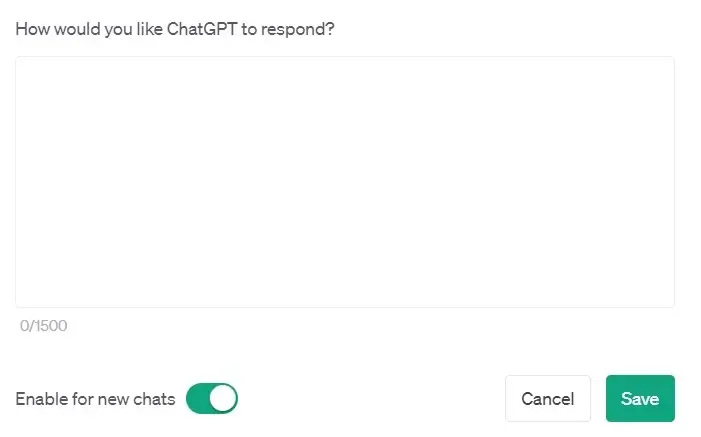 In diesem Feld beschreibst du den gewünschten Antwortstil oder spezifische Anforderungen an die Antworten von ChatGPT.